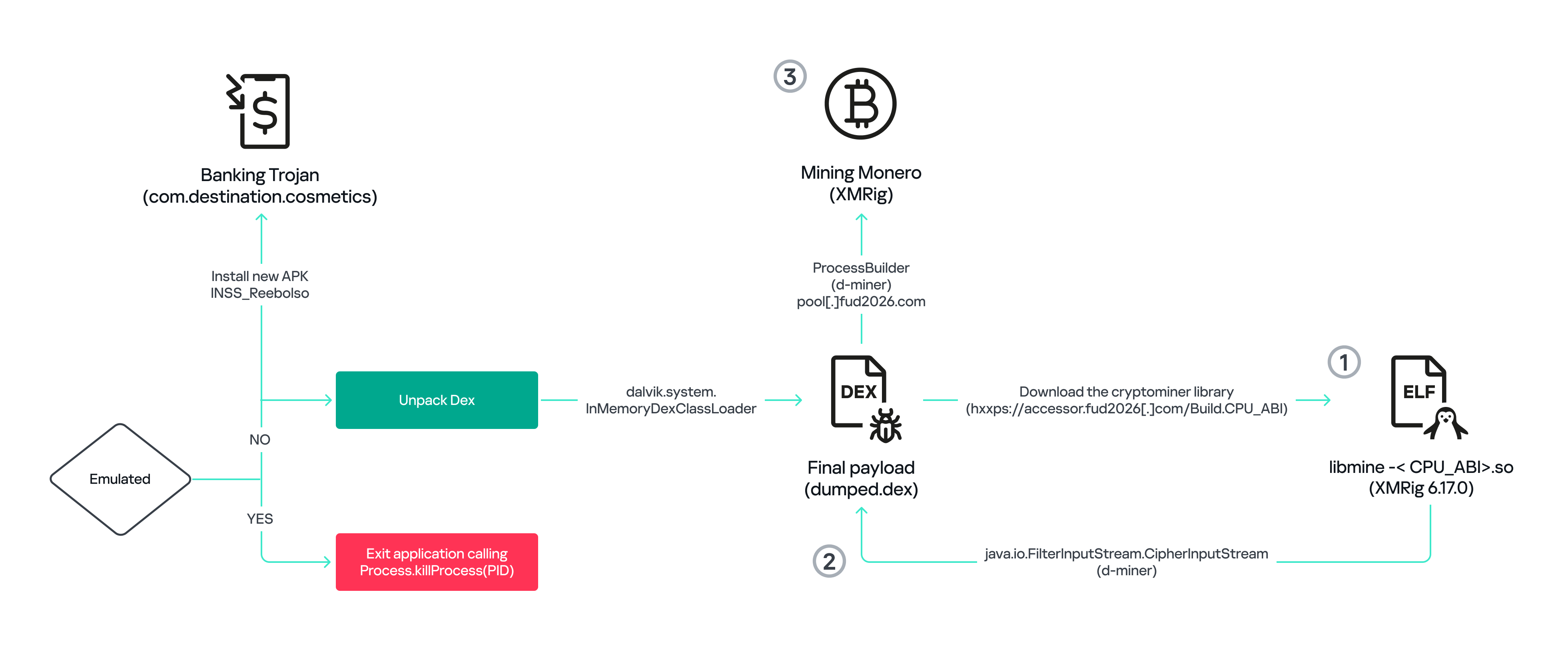 This blog post outlines each phase of the malware’s activity on the victim’s handset, explains how it ensures long‑term persistence, and describes its communication with mining pools.