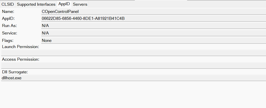 Now, what if we could trigger this COM object remotely? In other words, what if it is not just a COM object but also a DCOM object? To verify this, we checked the AppID of the COpenControlPanel object using OleViewDotNet.