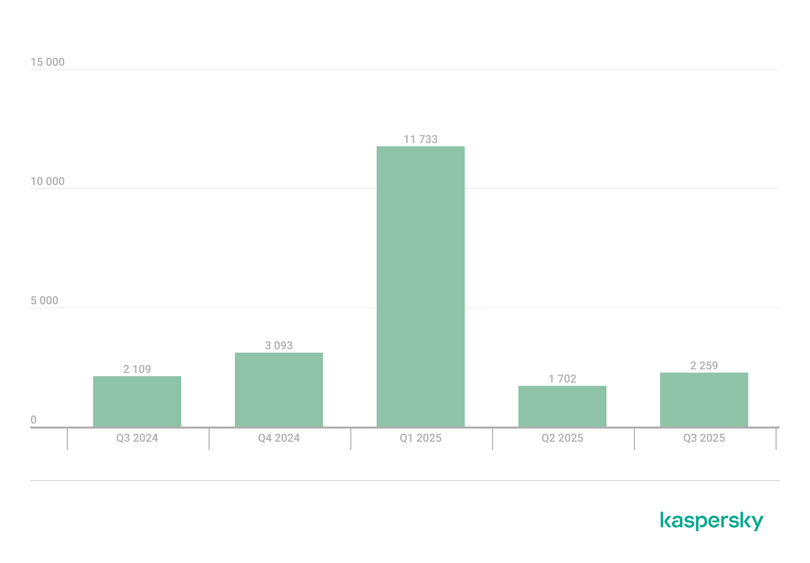 In the third quarter, Kaspersky solutions detected four new families and 2,259 new ransomware modifications, nearly one-third more than in Q2 2025 and slightly more than in Q3 2024.