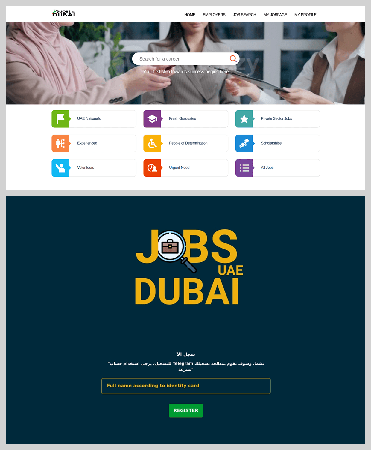 By analyzing current job market trends, threat actors also targeted popular career paths to steal messaging app credentials. These phishing schemes were tailored to specific regional markets. For example, in the UAE, fake “employment agency” websites were circulating.